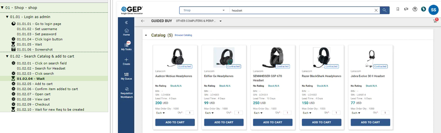 P2P, Sourcing, SRM, Reporting, ... our test platform includes many functions for all GEP modules, covering: